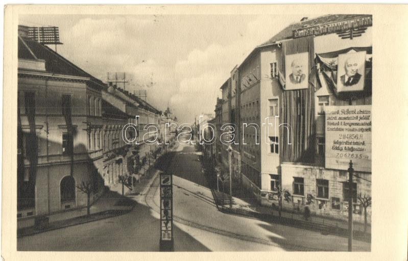 1951 Szombathely,Sztálin út, "Éljen Pártunk II. Kongresszusa"... https://www.darabanth.com/en/337-Online-auction/337.0/Postcards/Hungary~2000005/1951-Szombathely-Sztalin-ut-Eljen-Partunk-II-Kongresszusa-Rakosi-es-Lenin-arckepevel-Va~II1891446