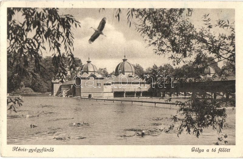 Hévíz-gyógyfürdő, gólya a tó fölött
