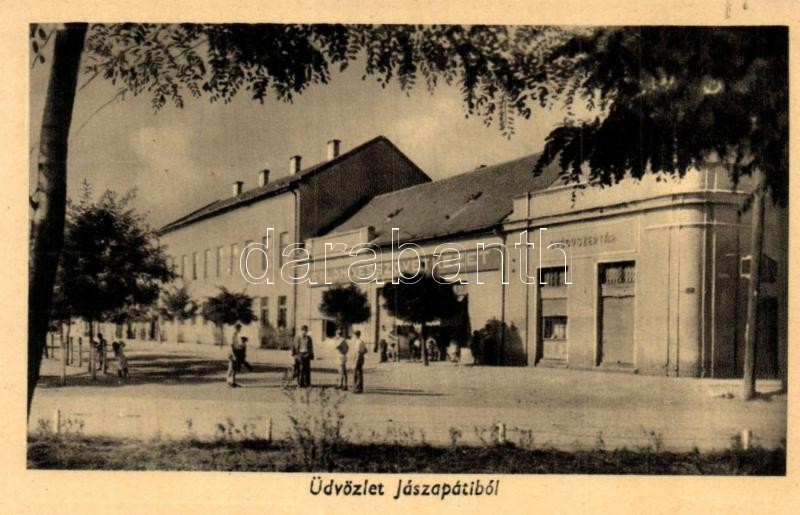 Jászapáti, Földmívesszövetkezet, gyógyszertár. Képzőművészeti Alap Kia...