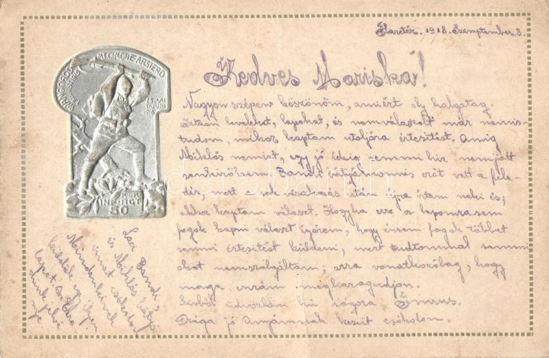 1918 Cs. és kir. 50. gyalogezred tábori levelezőlapja / K.u.K. Inf. Rgt. 50. Iwangorod-Mt. Cimone-Arsiero. Silver Emb. (fa)