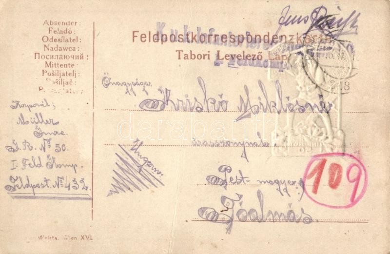 1918 Cs. és kir. 50. gyalogezred tábori levelezőlapja / K.u.K. Inf. Rg...