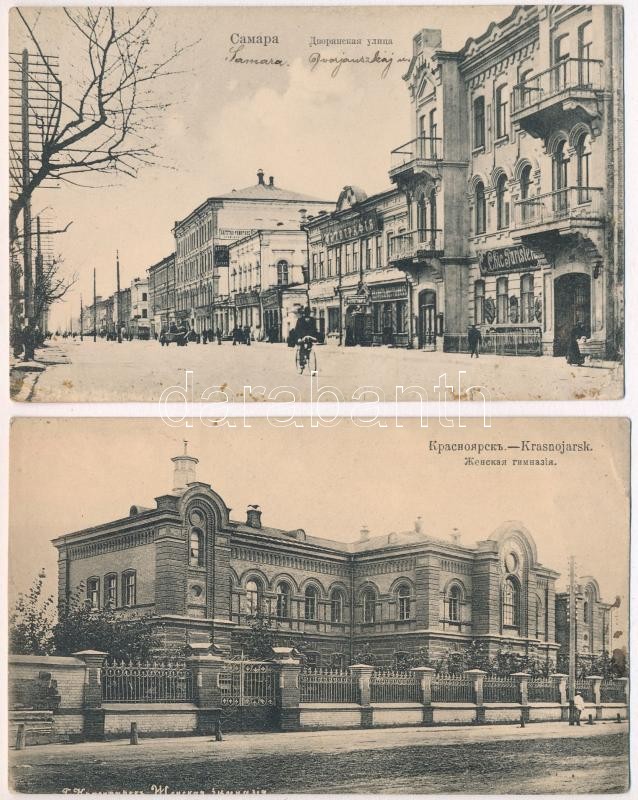 2 db RÉGI orosz városképes lap; Samara és Krasnoyarsk / 2 pre-1945 Russian town-view postcards; Samara and Krasnoyarsk