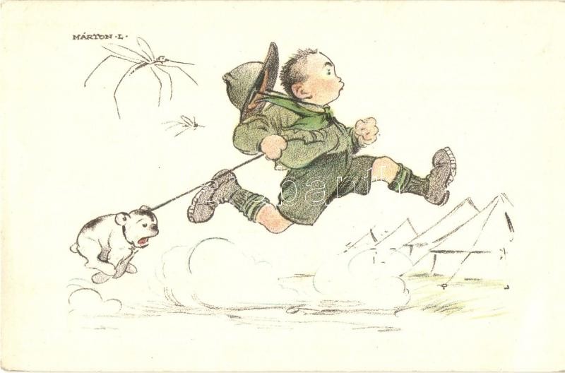 Kiadja a Magyar Cserkészszövetség Nagytábortanácsa 1926. / Hungarian boy scout art postcard s: Márton L. (EK)