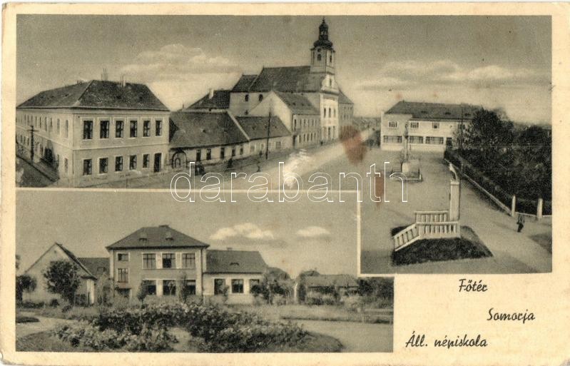 Somorja, Csallóköz-Somorja, Samorín; Fő tér, templom, állami iskola. Kiadja Kranzinger Nándor / main square, church, school (EB)