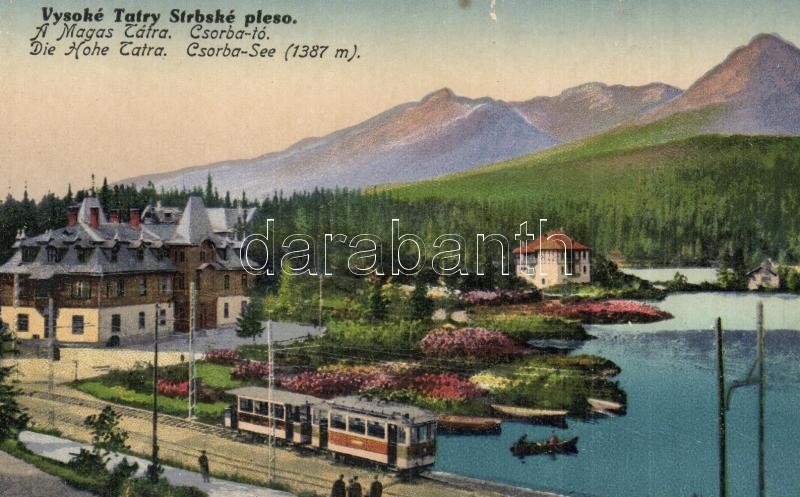 Tátra, Tatry; Csorba-tó, villamos / Strbské pleso / lake, tram