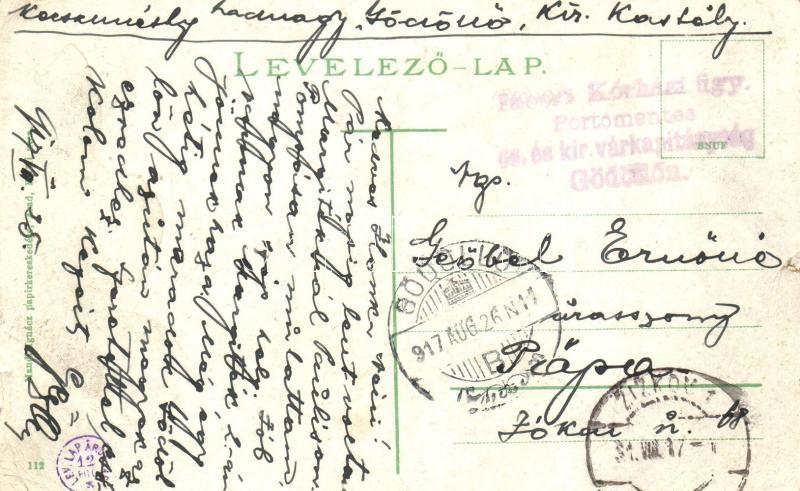 Description: Arad, Felső kereskedelmi iskola, park / commercial schook, park + Tábori kórházi ügy. portómentes cs. és kir. várkapitányság Gödöllőn (kis szakadás / small tear)