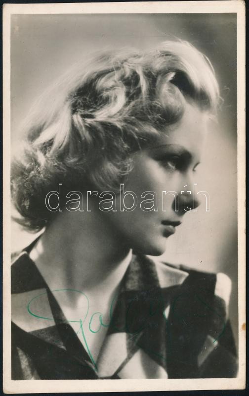 Goll Bea színésznő aláírása őt ábrázoló fotólapon