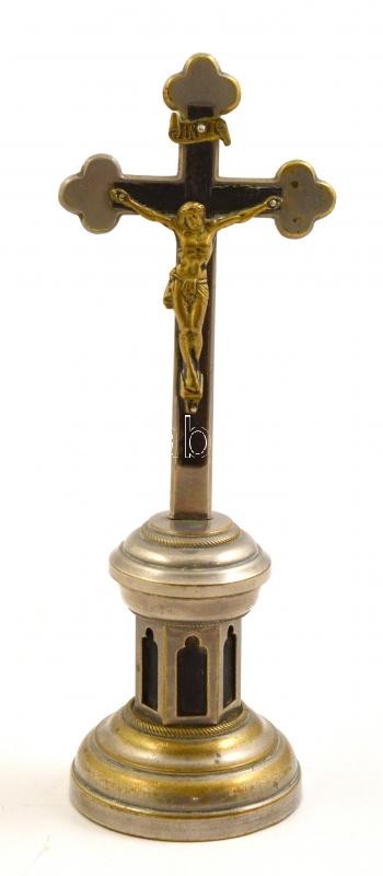 Kisméretű asztali fém feszület, m: 16 cm