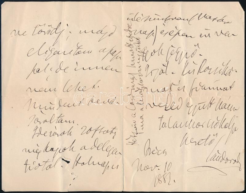 https://www.darabanth.com/en/338-Online-auction/338.0/Art-and-other-collectibles/Historical-documents-manuscripts~500018/1882-Hegedus-Sandor-1847-1906-kozgazdasz-miniszter-iro-sajat-kezzel-irt-kisse-zilalt~II1901791