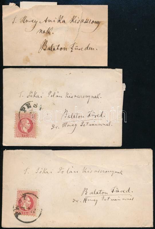 Description: cca 1860-1880 A Jókai, Hegedűs család irathagyatékából. 6 db családi levelezés részben ásvai Jókay Jolánnak (1849-1922) és Hegedűs Sándornak (1847-1906) szóló levelek azonosításra váró feladóktól, 3 meghívó, 13 db lebélyegzett, Jókai Jolánnak címzett levélboríték Balatonfüredre,