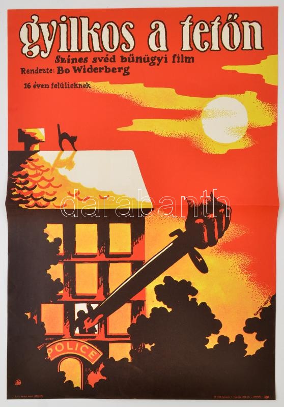1979 Koppány Simon (1943-)-Hodosi Mária (1943-): Gyilkos a tetőn, svéd film plakát, hajtásnyommal, 57x39,5 cm