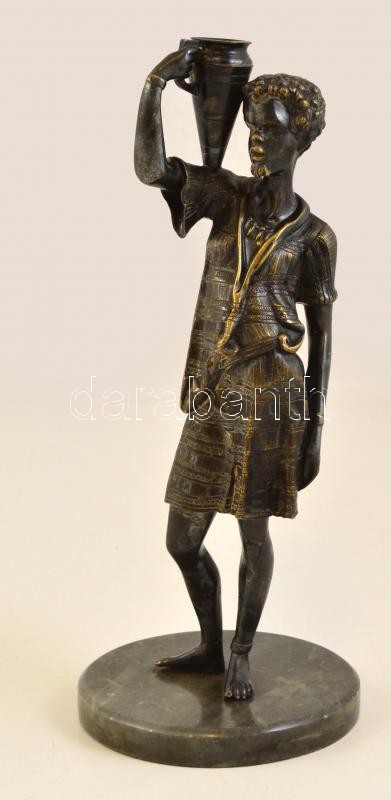 Jelzés nélkül: Vízhordó férfi (gyertyatartó). Bronz, márvány talapzaton, m: 31 cm