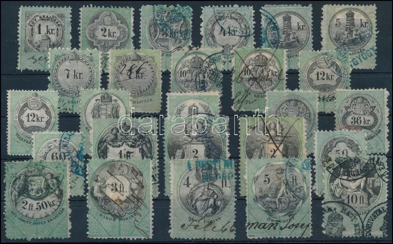 1870 26 db okmánybélyeg jobb értékekkel, jó állapotban