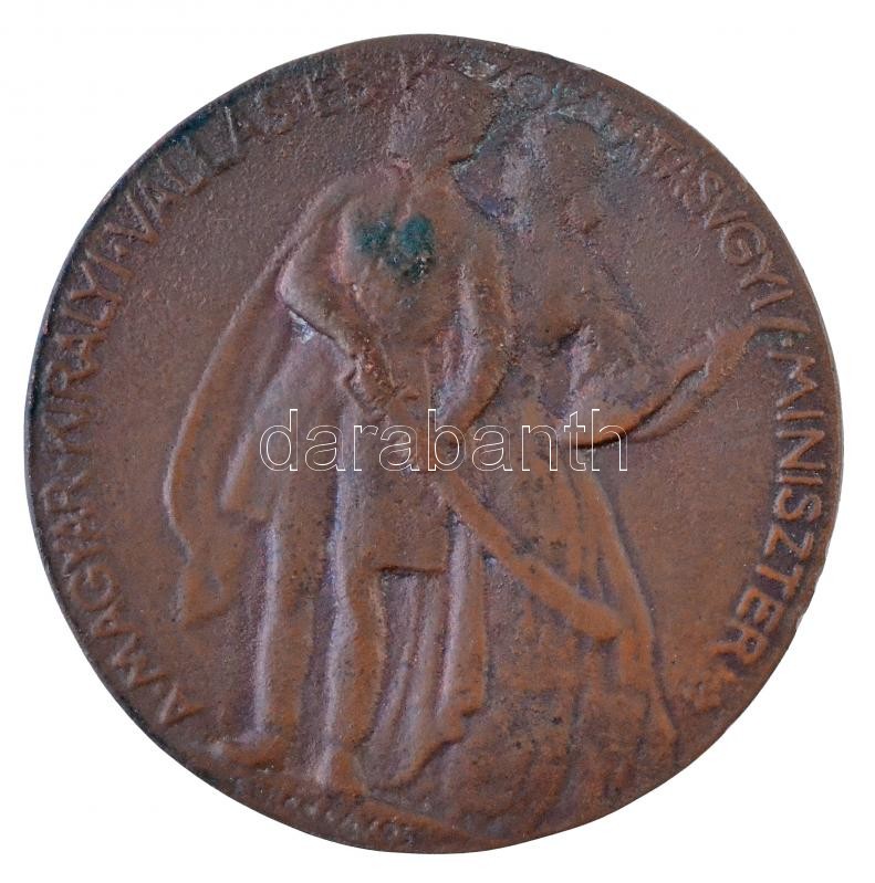 Description: DN "Petőfi Sándor születésének századik évfordulója emlékére / A Magyar Királyi Vallás és Közoktatásügyi Miniszer" kétoldalas, öntött Br plakett T:3 patina