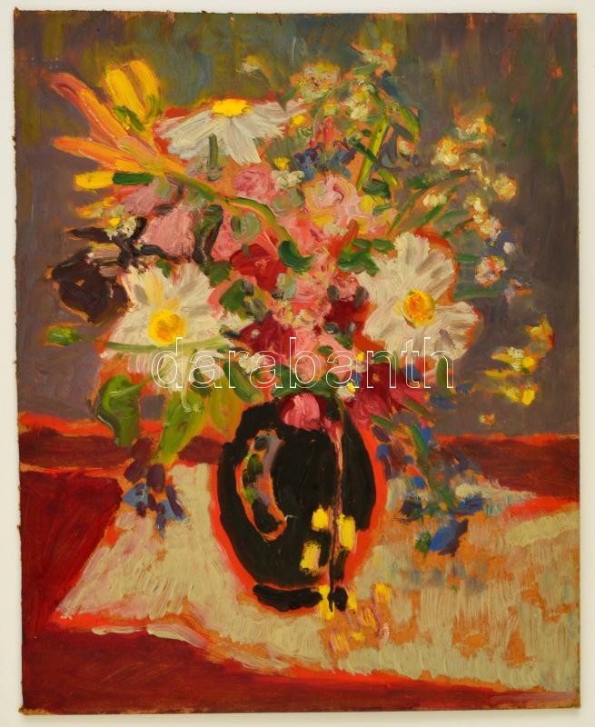 Schéner Mihály (1923-2009): Virágcsendélet. Olaj, farost, jelzett, 50×40 cm