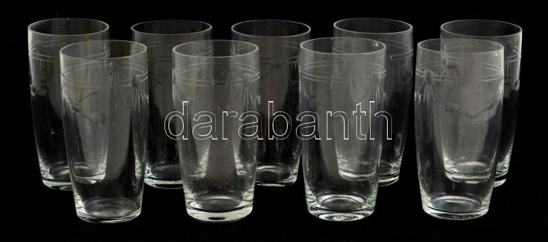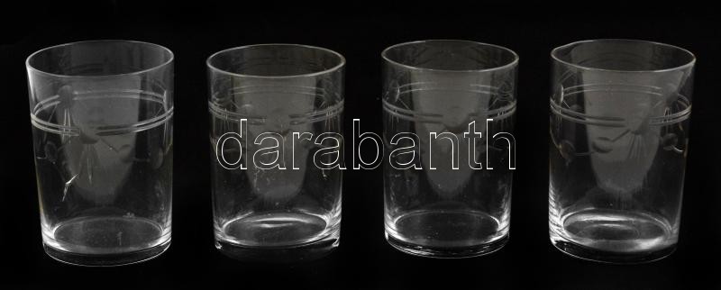 14 db üveg pohár, csiszolt, csorbákkal, kisebb karcolásokkal, m: 8 cm ...