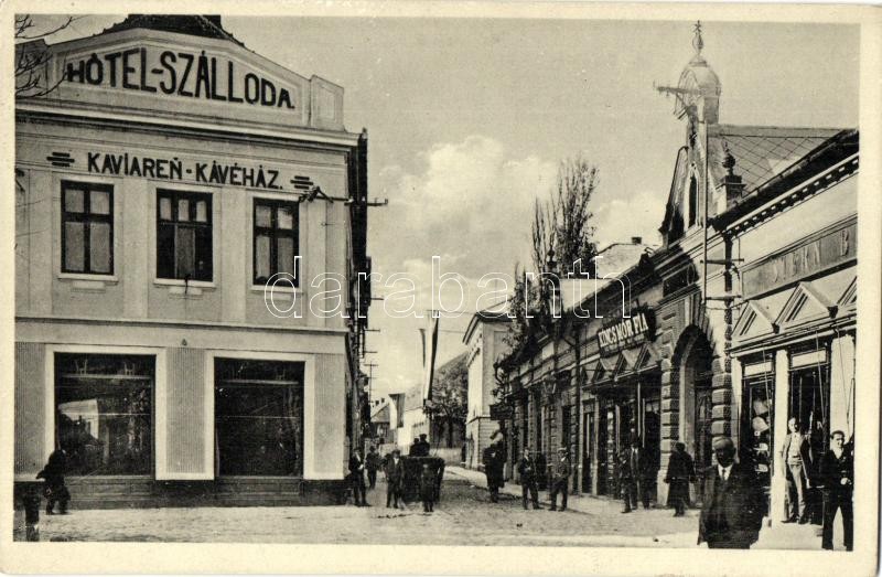 Komárom, Komárno; Zupná ulica / Megye utca, szálloda és kávéház, Kincs...