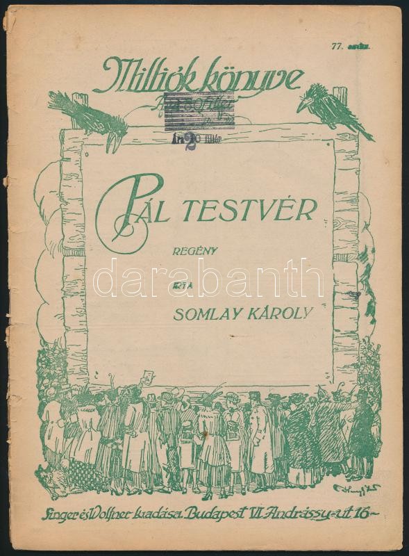 https://www.darabanth.com/en/339-Online-auction/339.0/Art-and-other-collectibles/Printed-Materials~500029/1918-Somlay-Karoly-Pal-testver-Milliok-Konyve-III-evf-77-szam-Bp-1918-Singer-es-Wol~II1618492