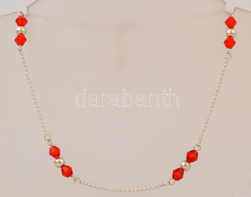 Ezüst(Ag) bokalánc, piros gyöngyökkel, állítható hosszúság, jelzett, h...