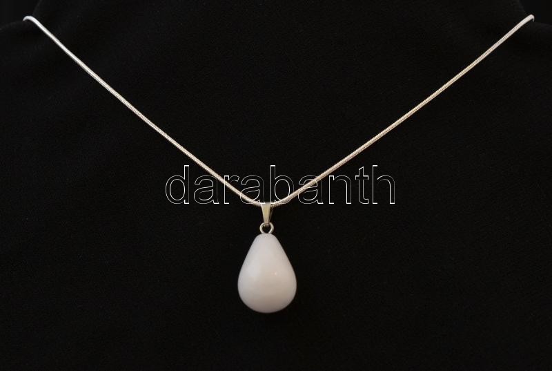 Ezüst(Ag) kígyó nyaklánc, jelzett, h: 57 cm, nettó: 5,2 g + ásvány függő, h: 1,5 cm
