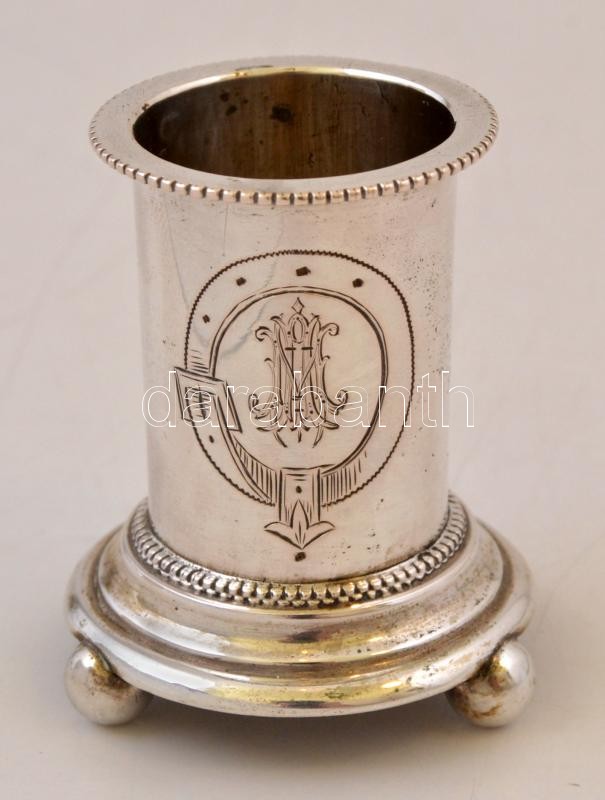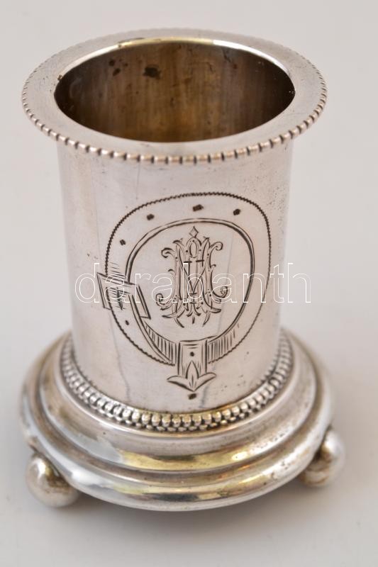 Ezüst(Ag) monogramos fogpiszkáló tartó, jelzett, m: 6 cm, nettó: 42 g