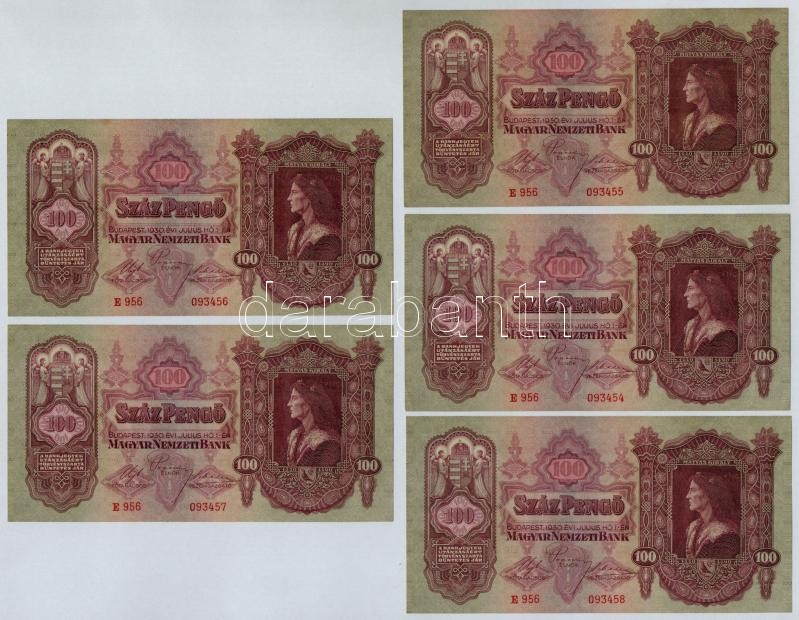 https://www.darabanth.com/en/339-Online-auction/339.0/Numismatics/Hungarian-Banknotes~1500011/1930-100P-5x-sorszamkovetok-TI-I-~II1904239