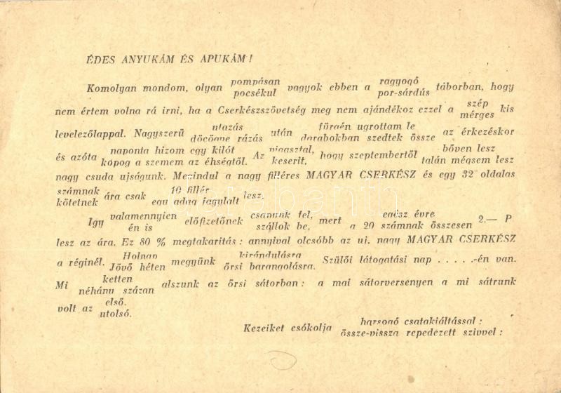 Előre megírt levelezőlap cserkésztáborból küldéshez / Hungarian scout ...
