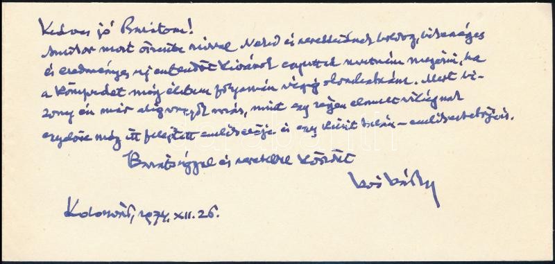 https://www.darabanth.com/en/34-Major-auction/34.1/Art-and-other-collectibles/Autographs~14658/1974-Kos-Karoly-1883-1977-ujevi-udvozlo-kartyaja-sajat-kezu-soraival-es-alairasava~II2199415