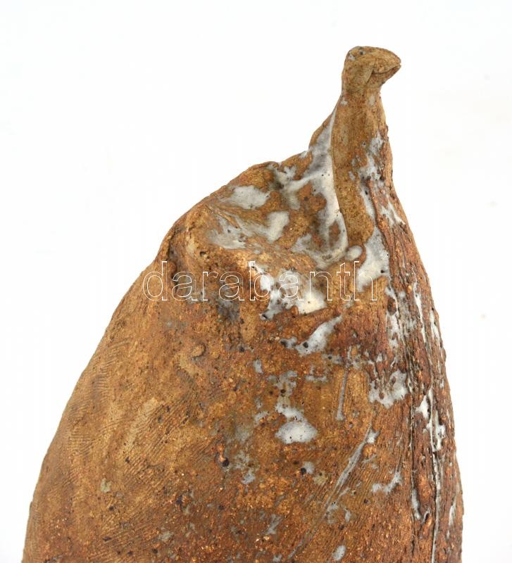 Gorka Lívia (1925-2011): Tyúk és a tojás. Csurgatott mázas kerámia, jelzett, hibátlan m: 32 cm