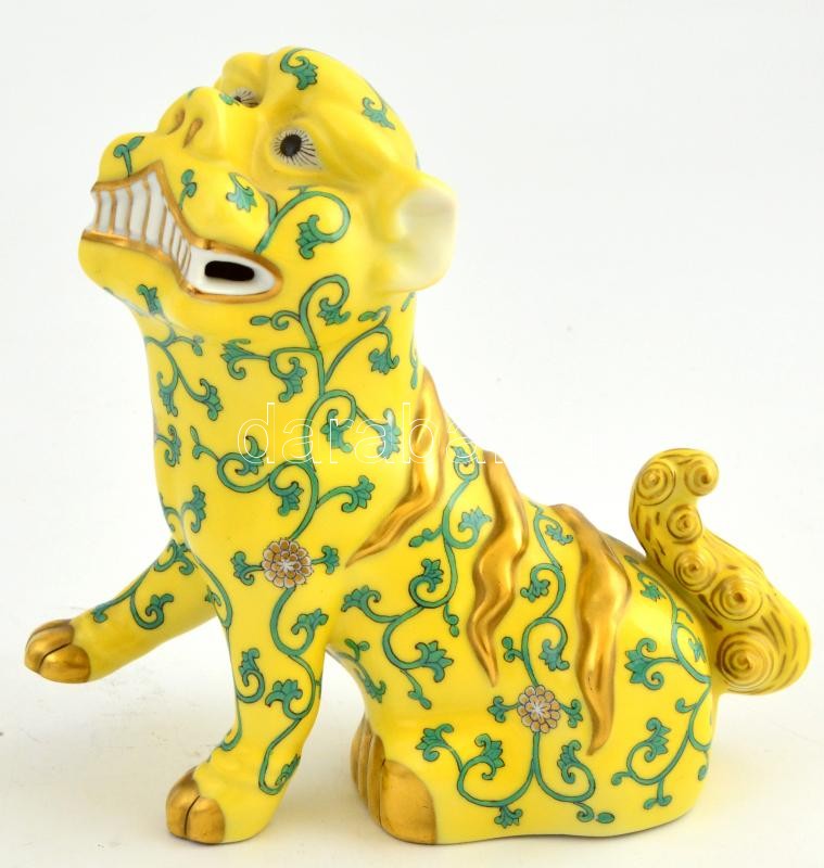 Description: Herendi kínai kapuőrző oroszlán, kézzel festett, jelzett, hibátlan, m: 16 cm / Herend Chinese guardian lion ("Foo dog"), handpainted, with hallmark, m: 16 cm