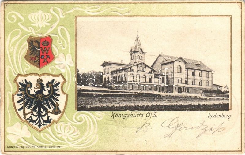 1901 Chorzów, Königshütte O.S.; Redenberg. Kunstverlag Bruno Scholz Art Nouveau, Emb. coat of arms litho (EK)