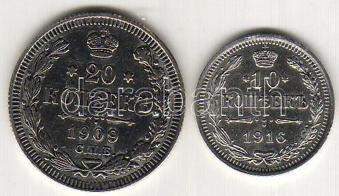 Oroszország 1916. 10k ezüst + 1909. 20k ezüst T:2,2/3+