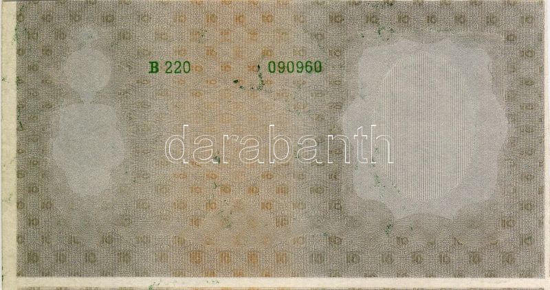 1929. 10P Csak hátoldali teljes nyomat, előlapon fázis sorszámokkal, nyomdafestékfoltokkal, fehér keskeny ívszéllel RRR!!! T:I
