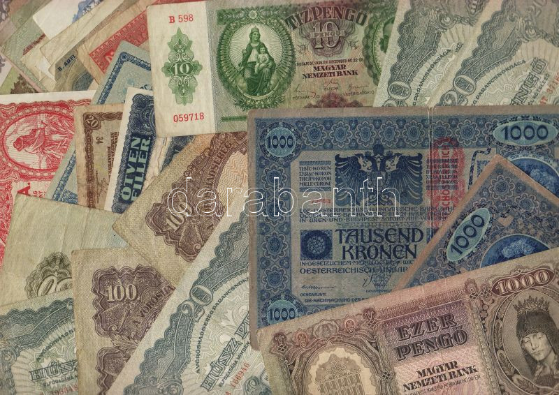 50 db bankjegy, benne korona, pengő, infla, jobbakkal T:II,III,IV