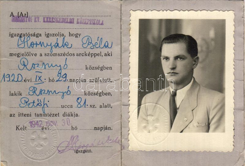 https://www.darabanth.com/en/34-Online-auction/34.0/Other-collectibles/~107/diakigazolvany-a-Rozsnyoi-KV-Kereskedelmi-Kozepiskolabol-1942~II58623
