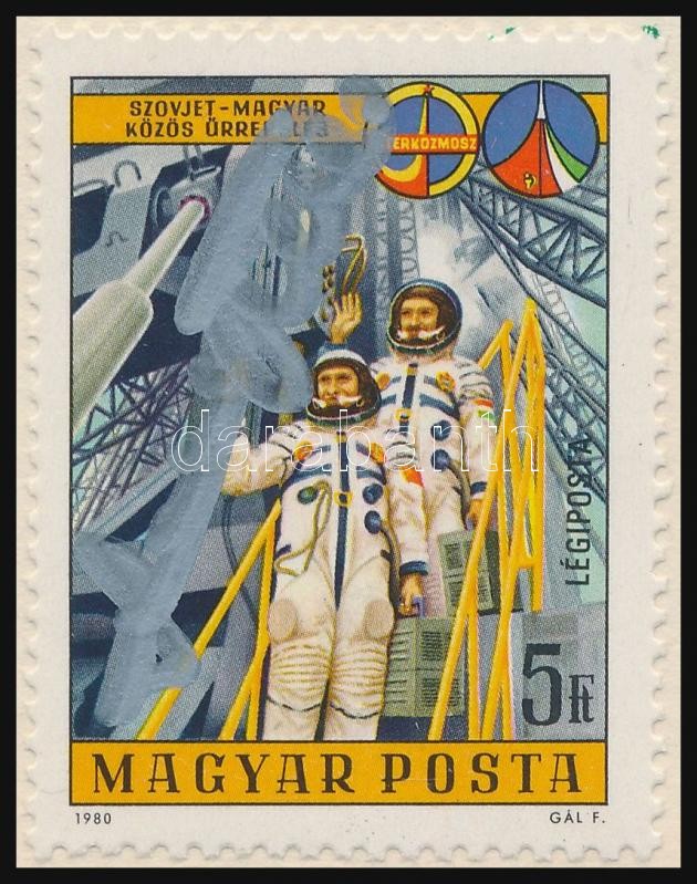 Farkas Bertalan magyar űrhajós aláírása közös űrrepülés bélyegen