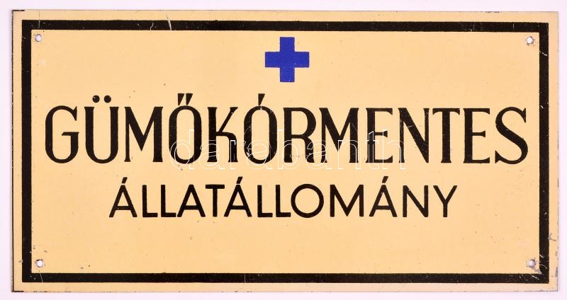 "Gümőkórmentes állatállomány" feliratos zománcozott fém tábla, 10×20 c...