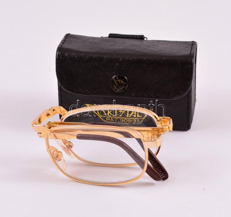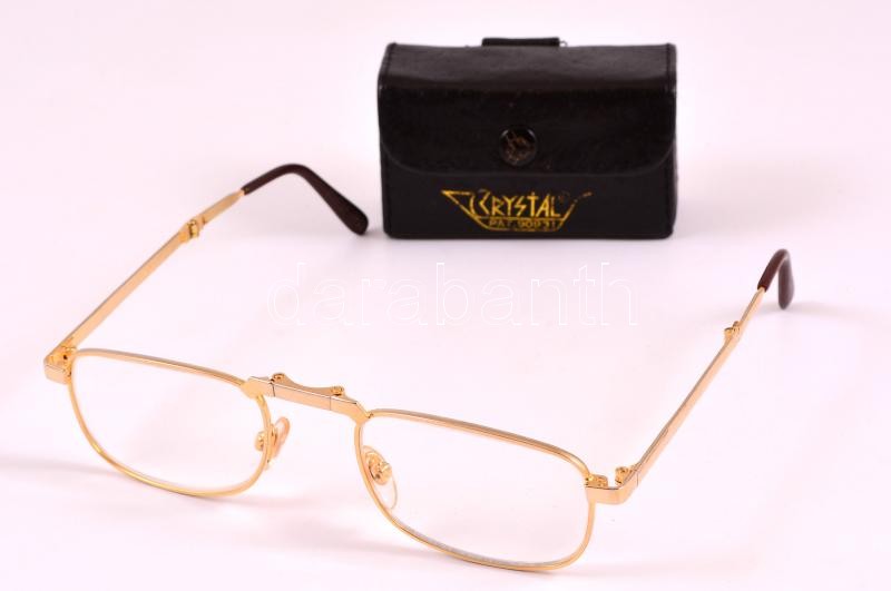 Összecsukható 2 dioptriás, kristályüveges, aranyozott szemüveg, bőr t...