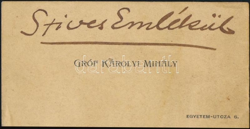 cca 1910-1920 Károlyi Mihály (1875-1955) politikus, miniszterelnök névjegykártyája, rajta saját kezű bejegyzésével: "Szíves emlékül", 4x8 cm.