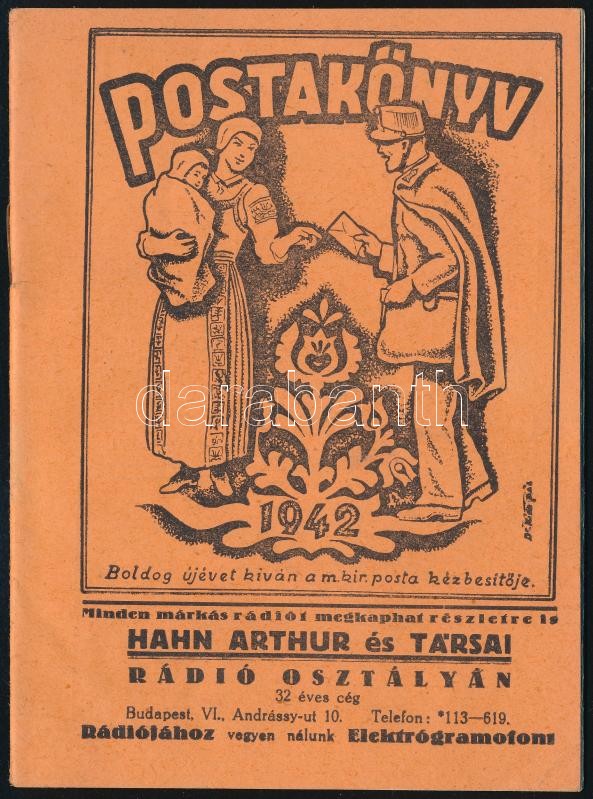 https://www.darabanth.com/en/340-Online-auction/340.0/Art-and-other-collectibles/Printed-Materials~500029/1942-Boldog-ujevet-kivan-a-m-kir-posta-kezbesitoje-Postakonyv-sok-reklammal-32p~II1909926