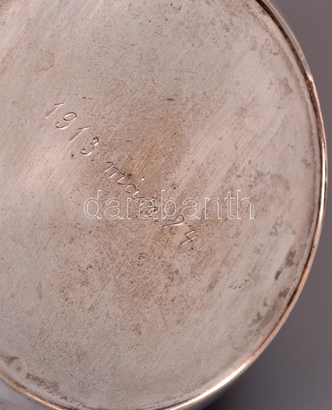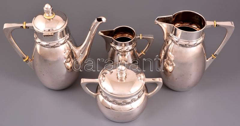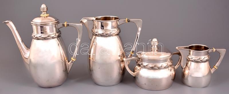 Art deco ezüst (Ag.) kiöntő készlet, elefántcsont gyűrűkkel, jelzett, mesterjeggyel (HS), összesen: 4 db, alján gravírozott felirattal "1913 márc.24.", nettó: 1255 g