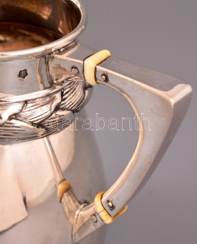 Art deco ezüst (Ag.) kiöntő készlet, elefántcsont gyűrűkkel, jelzett, ...
