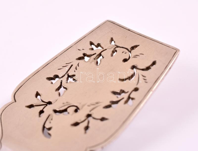 Ezüst(Ag) áttört virágmintás süteményes lapát, jelzett, h: 14 cm, nettó: 27,3 g