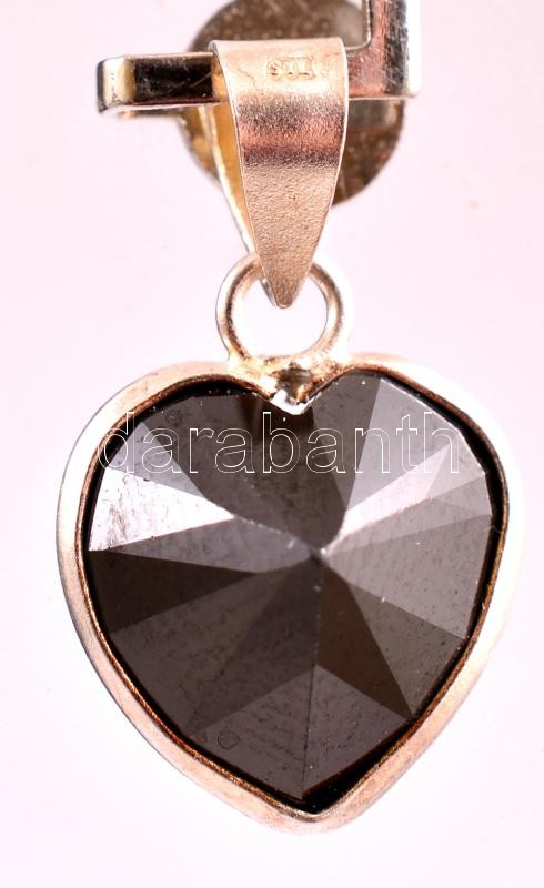 Ezüst(Ag) fekete cirkóniával díszített szív alakú függő, jelzett, h: 1...