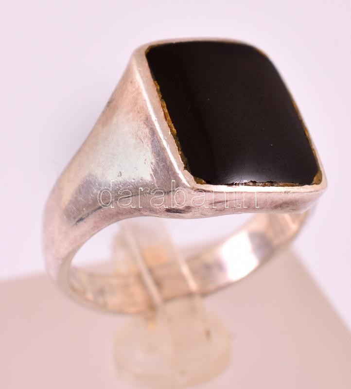 Ezüst(Ag) gyűrű, fekete zománc berakással, jelzett, méret: 53, bruttó: 5,6 g
