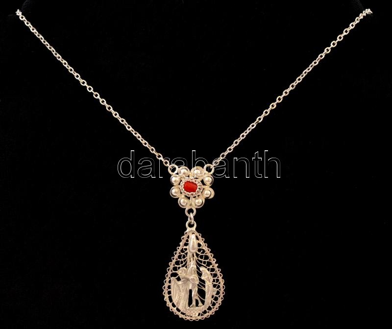 Ezüst(Ag) nyakék, filigrán medállal, jelzett, h: 49 cm, bruttó:10,1 g