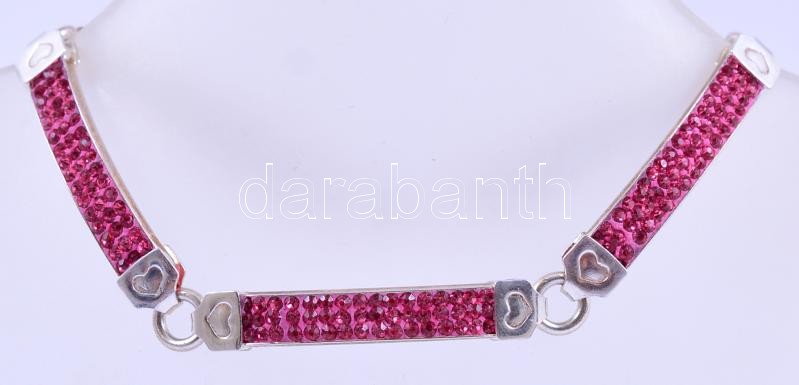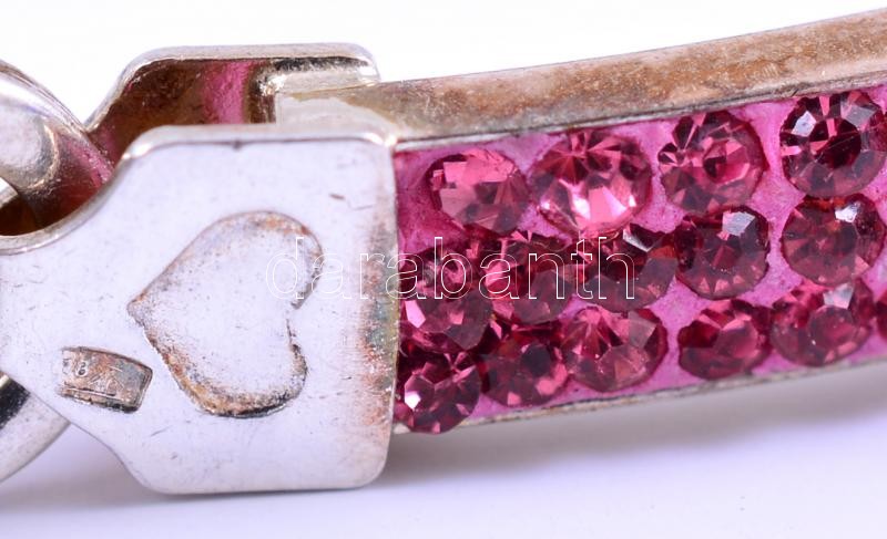Ezüst(Ag) rózsaszín strasszokkal kirakott glídes karperec, jelzett, h:...