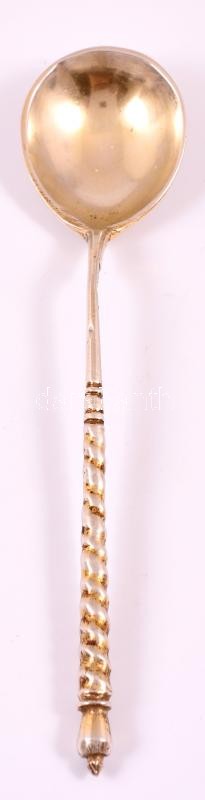 Orosz ezüst(Ag) csavart nyelű kanál, jelzett, h: 14,3 cm, nettó: 28,2 ...