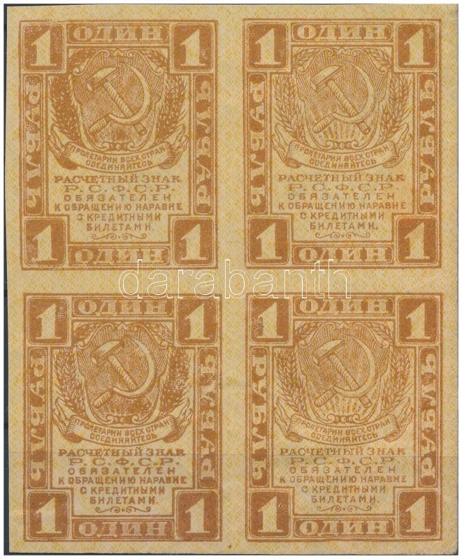 Russian Socialist Federated Soviet Republic 1919. 1 Ruble in a sheet of four C:XF