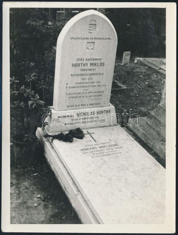 Description: cca 1970 Lisszabon, vitéz nagybányai Horthy Miklós (1868-1957) és felesége Horthy Miklósné jószáshelyi Purgly Magdolna (1881-1959) sírjának fotója, 12x9 cm